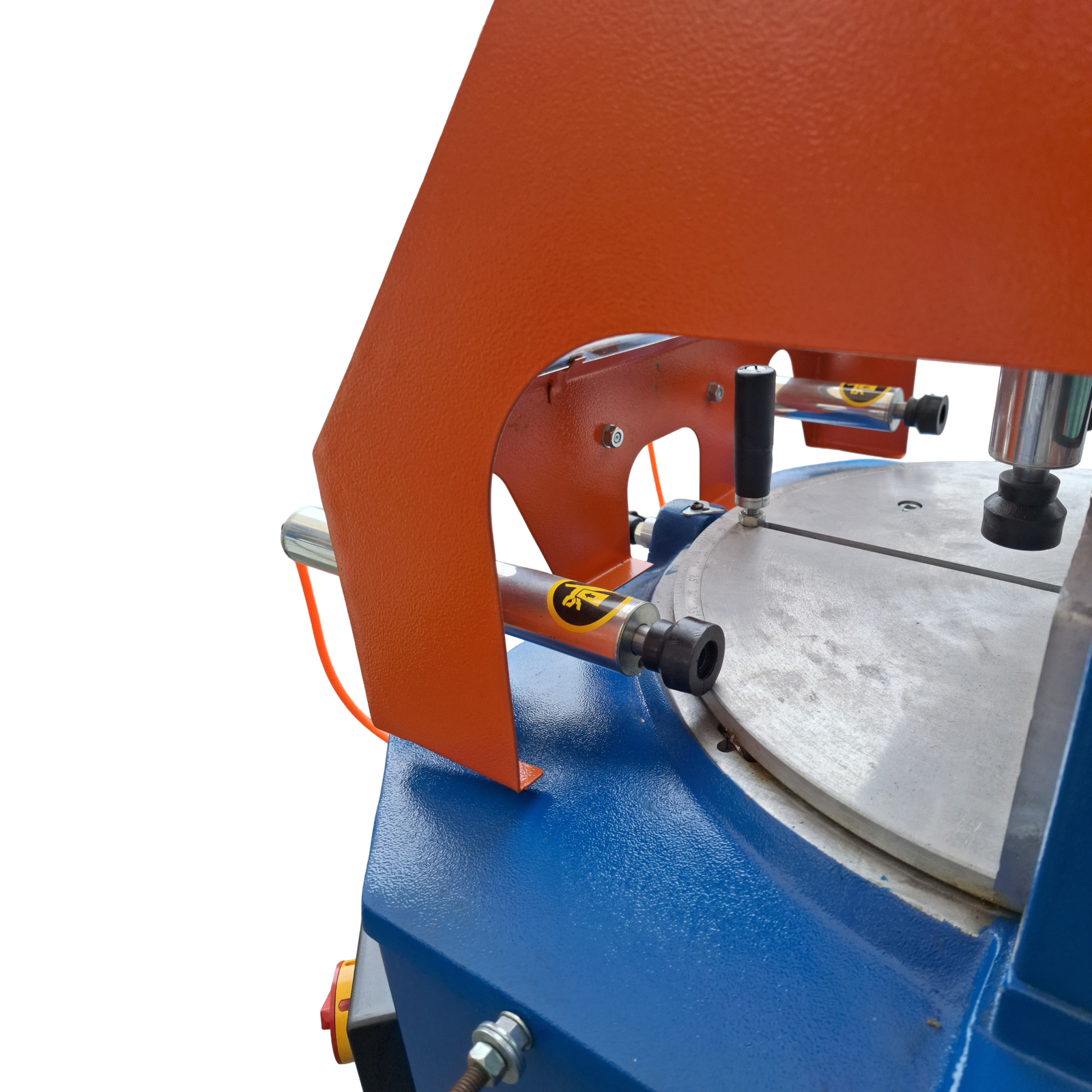 Hydro pneumatic blade feed for smooth cutting (fully adjustable).