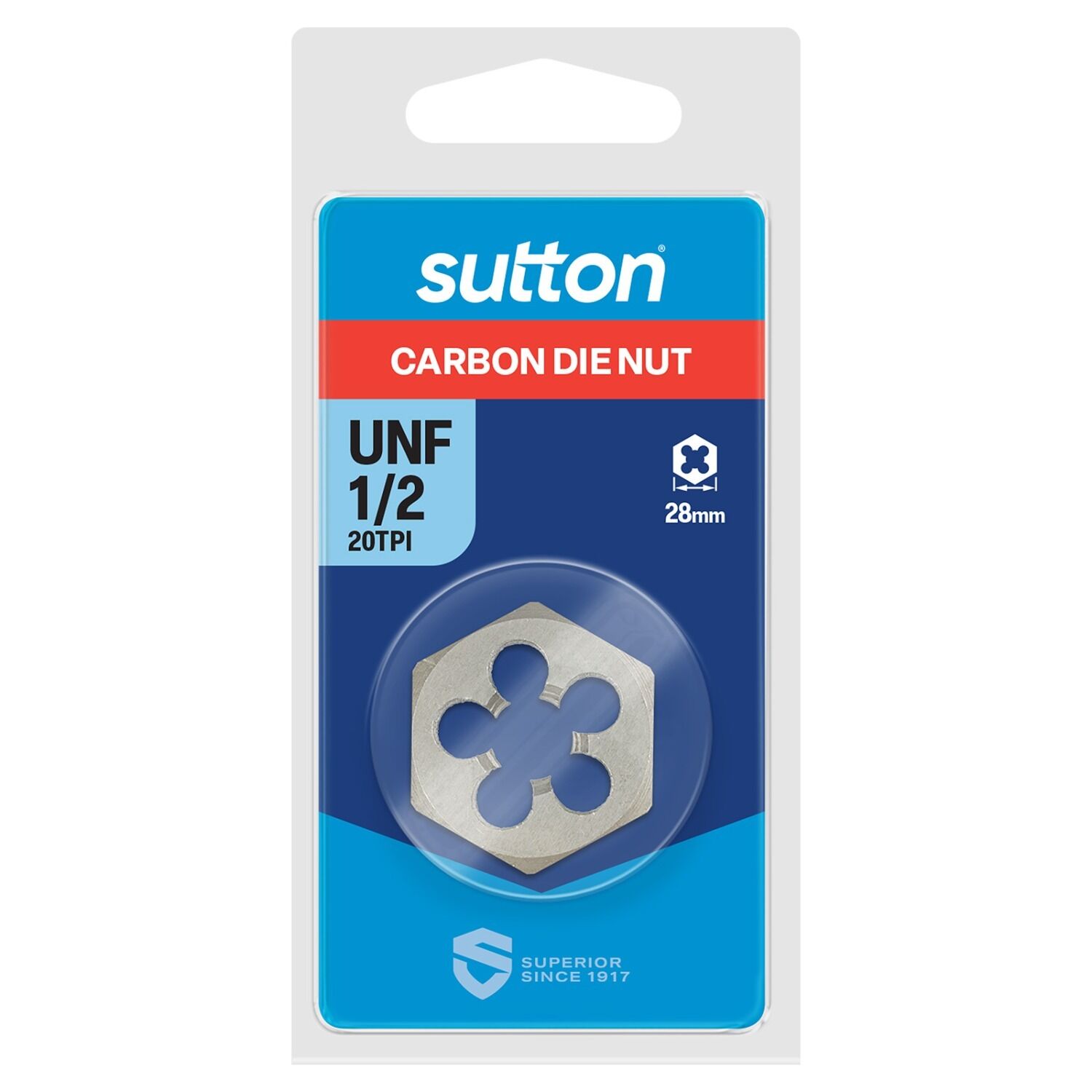 Sutton Tools Die Nuts are designed for cleaning and resizing existing damaged threads. Carbon Alloy Steel threading tools are not suitable for precision, safety or critical thread. General purpose / DIY use only.